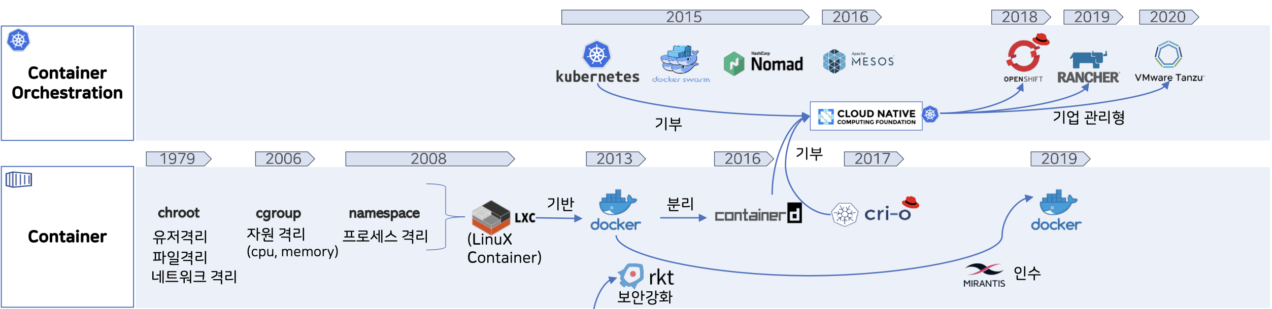 컨테이너 진화과정을 학습한다면 쿠버네티스를 이해하는데 순조로울 것이다.