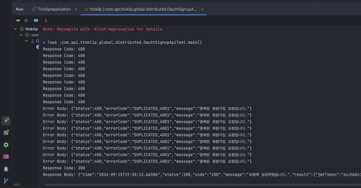 이렇게 하면 accessToken의 유효성을 먼저 검증한 후 회원가입이 필요할 때만 분산락이 적용되므로 잘못된 예외가 발생하지 않는다.