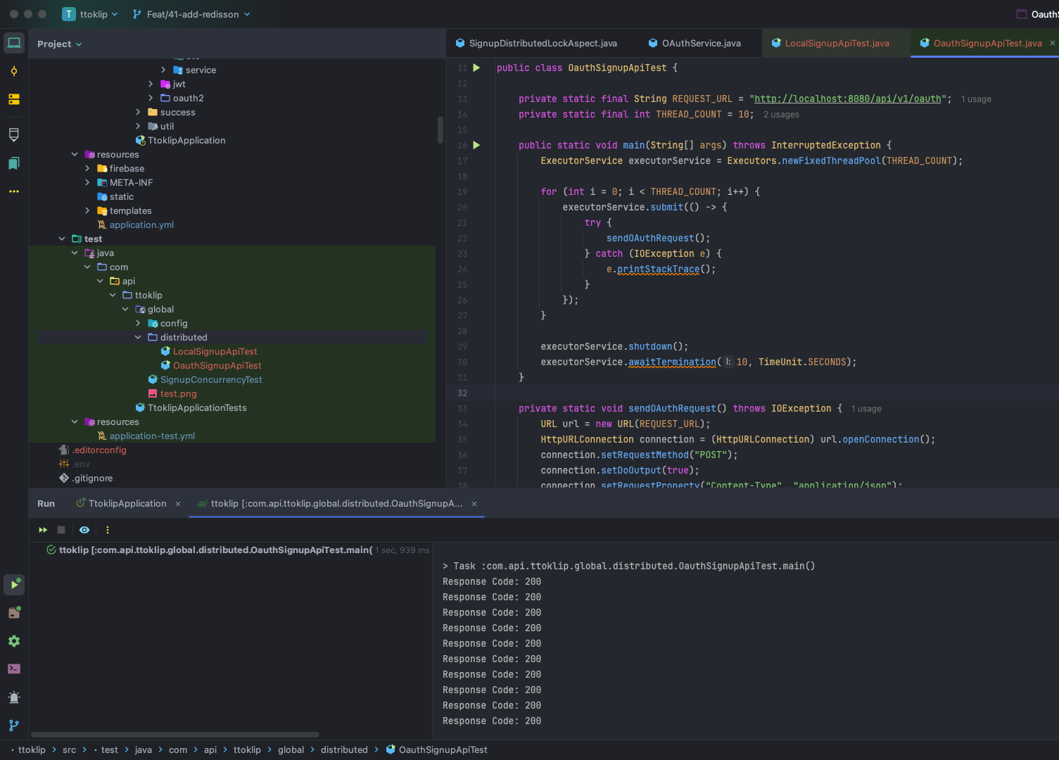 이를 통해 회원가입 시점에만 Redis 락을 적용하여 모든 OAuth 로그인 요청에서 Redis를 거치지 않도록 하는 비효율을 해결할 수 있었다.