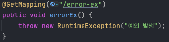 Exception은 서버 내부에서 처리할 수 없는 오류로 간주하고 HTTP 상태코드 500 코드를 반환한다.