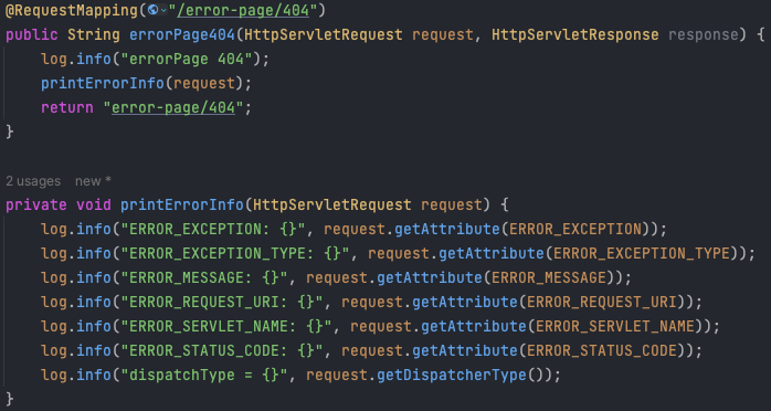 RequestDispatcher에 상수로 정의되어 있는 정보와 같은 것으로 상수로 정의하고, 이를 활용하여 로그를 찍어서 에러 발생 시에 로그를 확인했다.