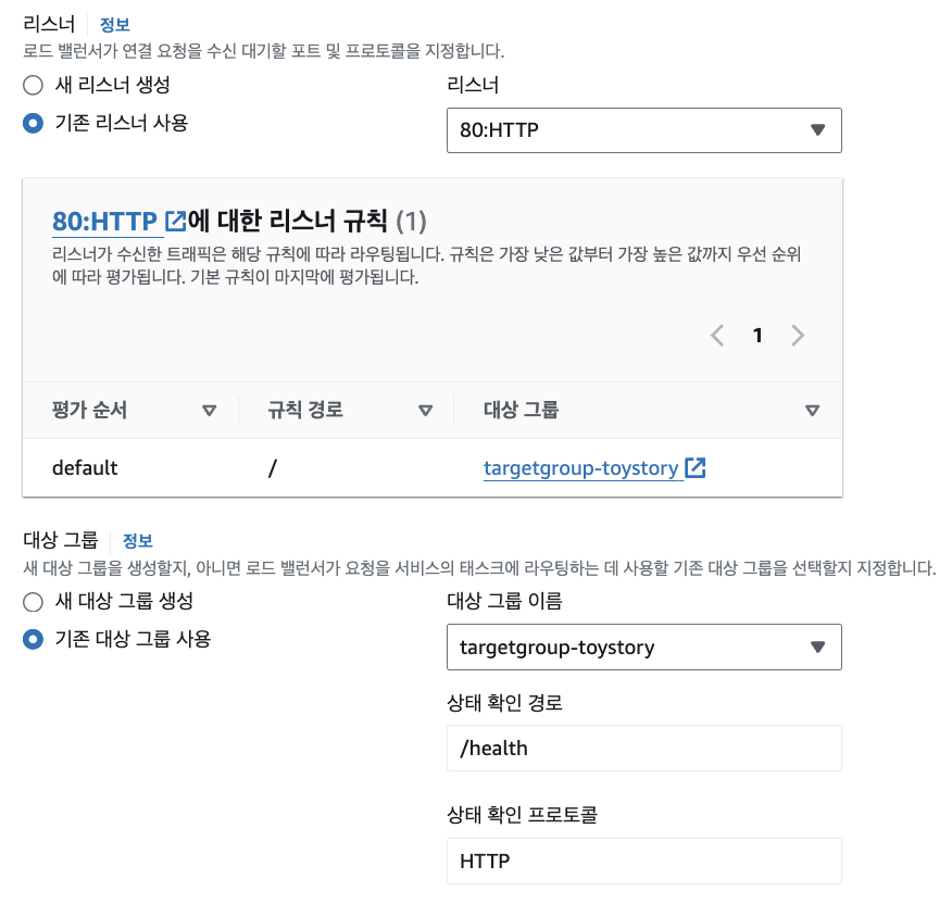 그리고 이제 로드밸런서 생성 시에 만들었던 기존 리스너를 그대로 사용합니다.
