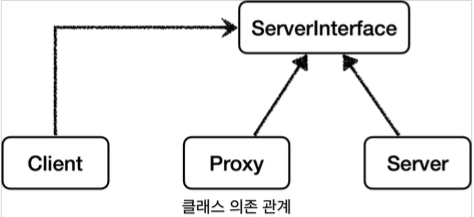 클래스 의존관계를 보면 클라이언트는 서버 인터페이스에만 의존한다.