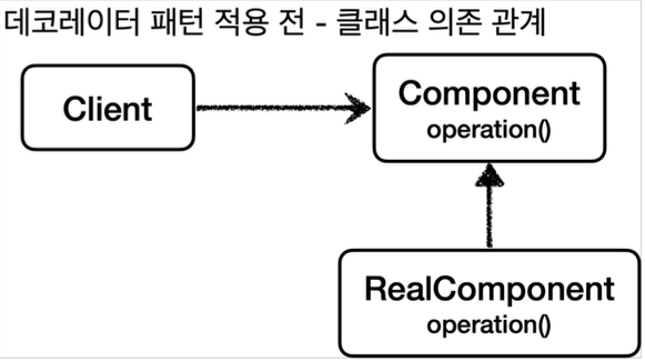 데코레이터 패턴 적용 전 - 실제 런타임 객체 의존 관계