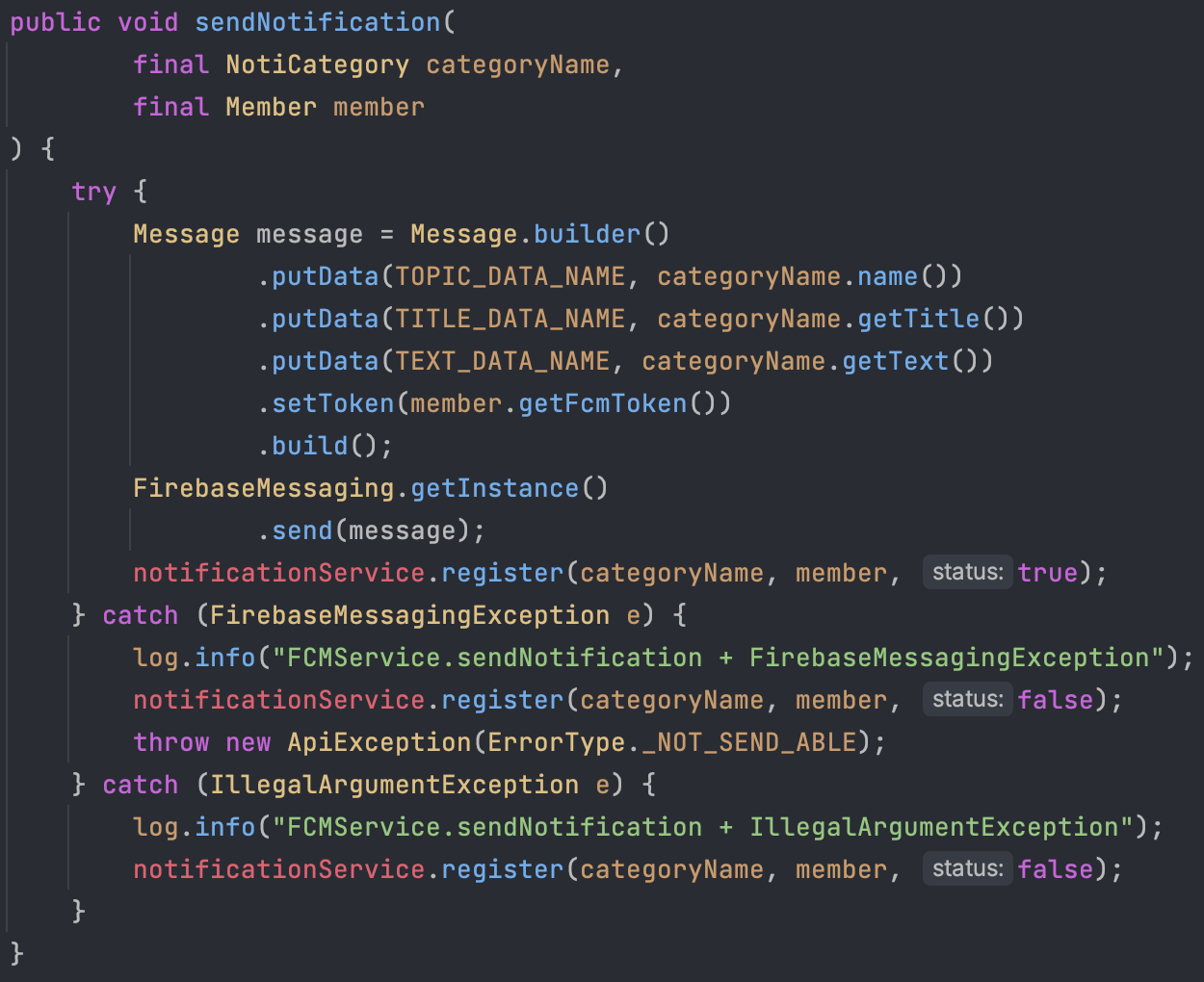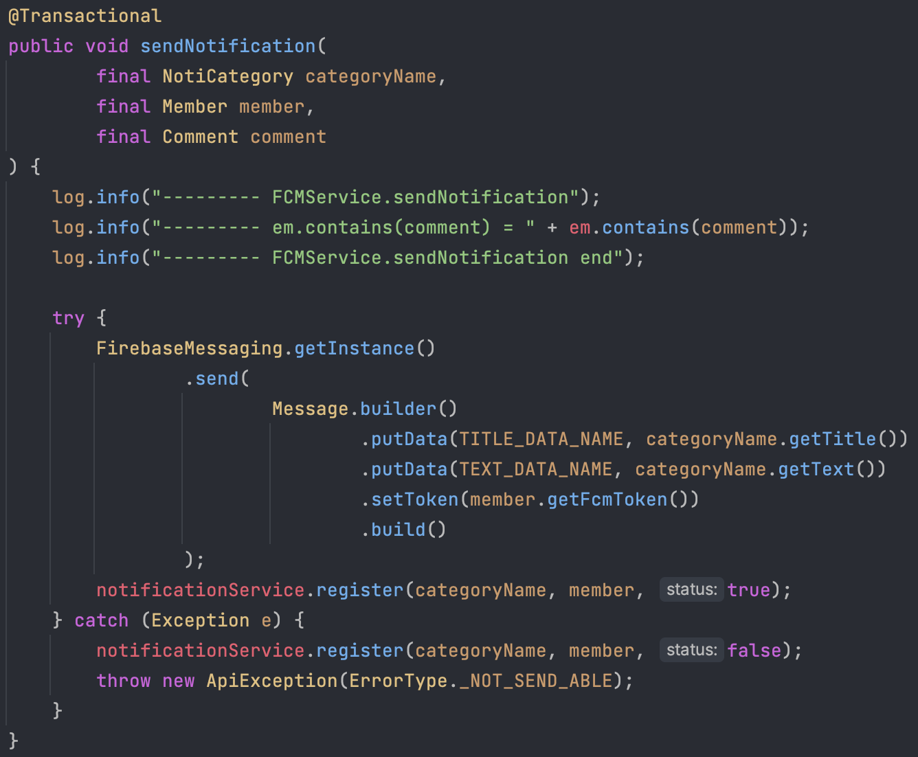 FcmService.sendNotification()
